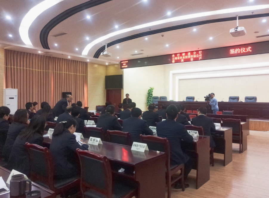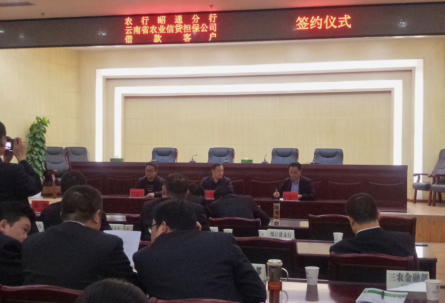 會(huì)議由農(nóng)業(yè)銀行分行三農(nóng)部負(fù)責(zé)人李國(guó)云主持,農(nóng)擔(dān)公司昭通辦事處朱磊代表公司分別與鹽津縣、綏江縣、永善縣支行行長(zhǎng)及其借款客戶(hù)進(jìn)行簽約。