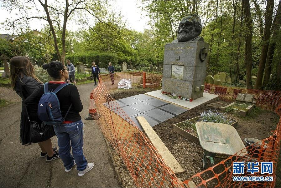 歷史長河奔流不息,真理之光穿越時空。1818年5月5日,德國小城特里爾,一代偉人馬克思誕生。200年后,世界東方。高擎馬克思主義的精神火炬,在習近平新時代中國特色社會主義思想指引下,中國共產(chǎn)黨正領導億萬人民書寫人類發(fā)展史上新的奇跡。這是2018年5月3日,在英國倫敦北部海格特公墓,人們來到正在進行維修的馬克思墓前參觀。新華社發(fā)(蒂姆·愛爾蘭攝)