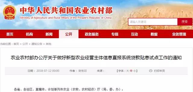 為加快推進(jìn)新型農(nóng)業(yè)經(jīng)營(yíng)主體信息直報(bào)系統(tǒng)(以下簡(jiǎn)稱直報(bào)系統(tǒng))應(yīng)用實(shí)施,幫助緩解新型農(nóng)業(yè)經(jīng)營(yíng)主體貸款難、貸款貴問(wèn)題,我部將以直報(bào)系統(tǒng)為載體開(kāi)展貸款貼息試點(diǎn)。現(xiàn)將有關(guān)事宜通知如下。