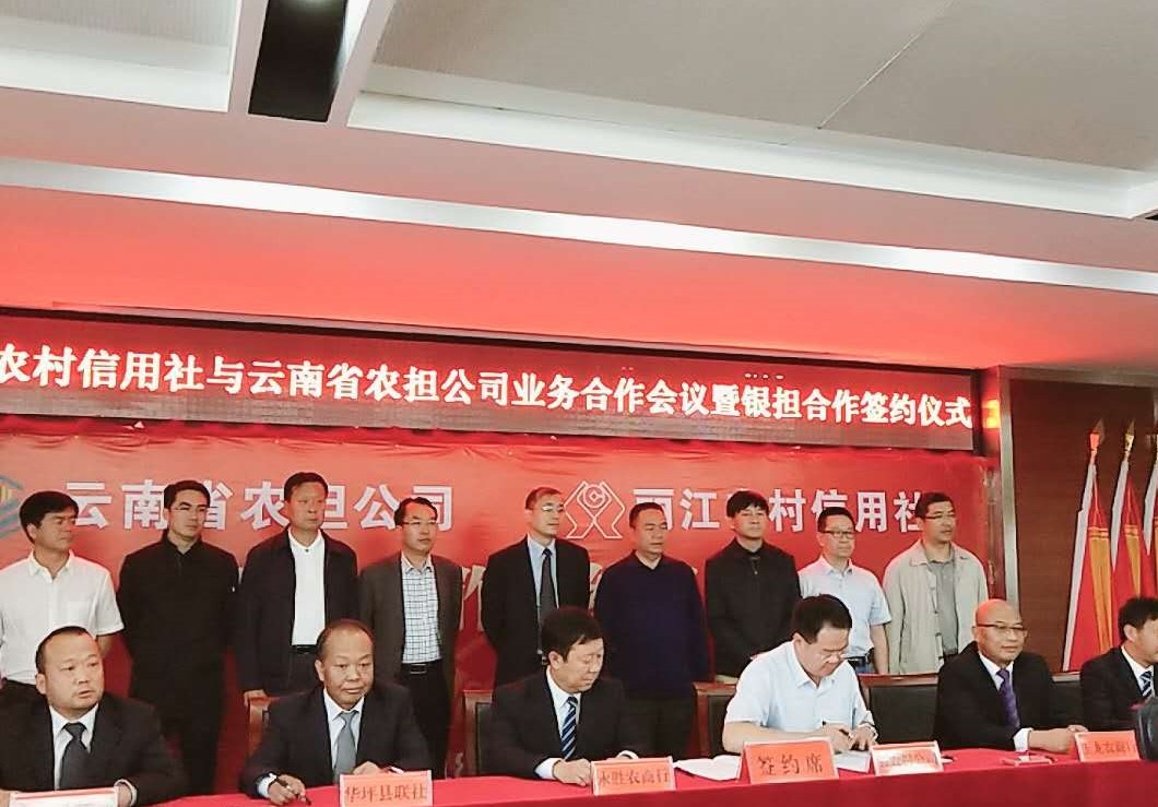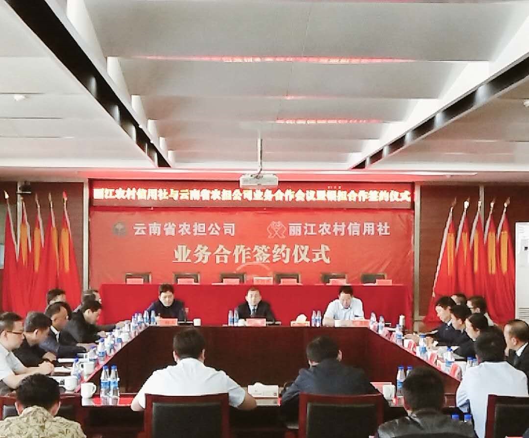 會議現(xiàn)場,省農(nóng)擔公司總經(jīng)理杜開波同志分別與古城區(qū)、玉龍縣、永勝縣、寧浪縣、華坪縣五個縣區(qū)農(nóng)信社簽訂了戰(zhàn)略合作協(xié)議;與三家農(nóng)業(yè)新型經(jīng)營主體,簽訂了相關(guān)信貸擔保合同。會后新聞媒體采訪了杜開波總經(jīng)理接和貸款農(nóng)戶,跟蹤報道放款過程。