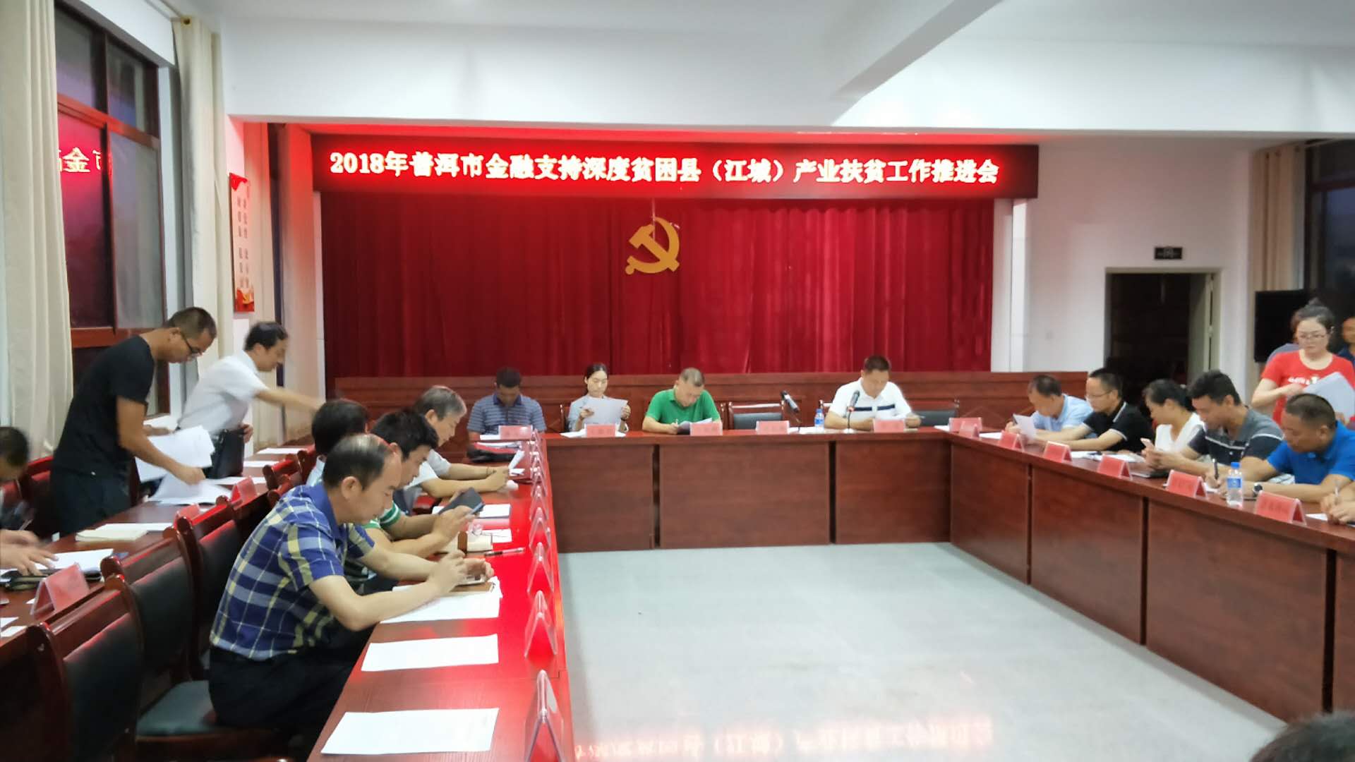 2018年8月20日,由普洱市人民銀行發(fā)起的以普洱市金融機構(gòu)支持深度貧困縣的扶貧工作的推進會在江城縣整董鎮(zhèn)召開,江城縣人民政府、中國人民銀行普洱市中心支行、整董鎮(zhèn)人民政府、人民銀行江城縣支行、普洱市級涉農(nóng)銀行業(yè)金融機構(gòu)、江城縣各銀行業(yè)金融機構(gòu)、江城縣扶貧辦、農(nóng)科局、發(fā)改局、財政局(金融辦)、工信局、文體廣電旅游局、稅務(wù)局、招商局及江城縣部分企業(yè)參會。