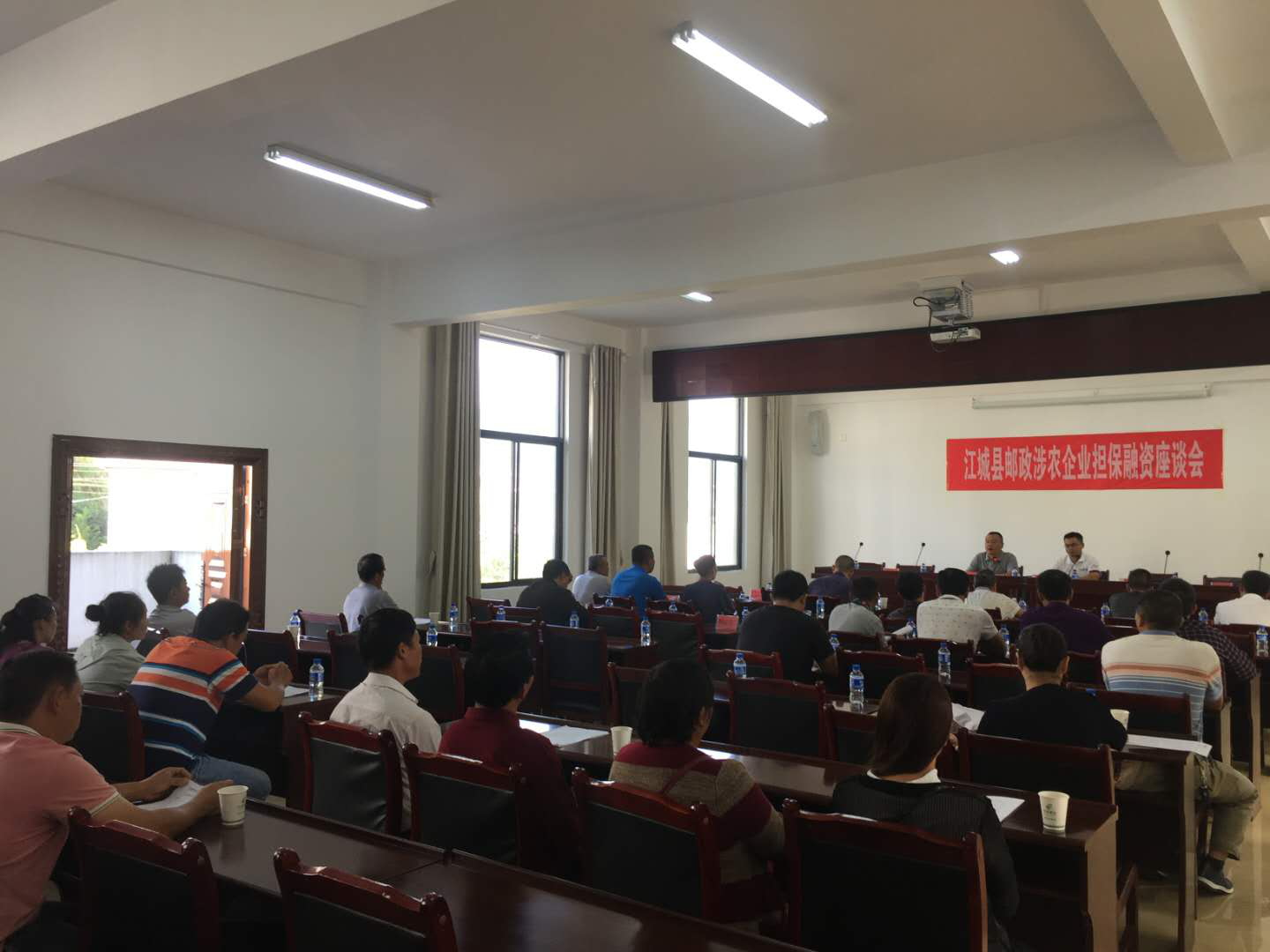 2018年9月21日,為響應(yīng)8月中旬整董會議精神,經(jīng)1個月多方籌備后,公司普洱辦事處戴維應(yīng)邀到江城縣參加郵儲銀行舉辦的“銀企座談會”,與江城縣郵儲負責(zé)人普及進行業(yè)務(wù)政策宣講,江城縣上百家涉農(nóng)企業(yè)參加座談。會上,普洱辦事處戴維就公司成立背景、政策方向、服務(wù)范圍、當(dāng)前業(yè)務(wù)開展進度和業(yè)務(wù)流程等進行講解,現(xiàn)場與客戶聯(lián)動,針對公司準入具體標準、資料準備要素、房產(chǎn)、林權(quán)等反擔(dān)保物標準等具體問題進行解釋說明,現(xiàn)場達成意向貸款戶89戶,意向金額3700萬元,計劃國慶收假后普洱辦事處與銀行聯(lián)合盡調(diào)項目,爭取10月底將項目落地。
