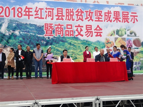 近日,紅河縣舉辦脫貧攻堅(jiān)成果展示暨商品交易會(huì),向中外游客展示紅河縣脫貧攻堅(jiān)成果。交易會(huì)上,紅河縣與中國(guó)石化銷(xiāo)售有限公司云南石油分公司、云南椹源農(nóng)業(yè)有限公司現(xiàn)場(chǎng)簽訂了投資協(xié)議書(shū)。