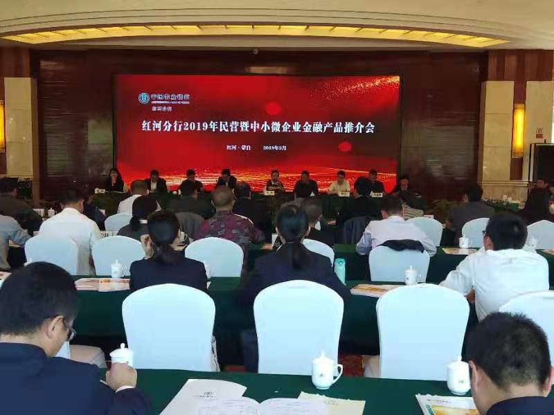 2019年2月26日下午,紅河辦事處應(yīng)邀參加了農(nóng)行紅河州分行舉辦的“2019年民營暨中小微企業(yè)金融產(chǎn)品推介會”,參會人員及單位有農(nóng)行紅河州分行行長朱旭鵬、副行長楊增偉、紅河銀監(jiān)分局、州人行信貸科、州工商聯(lián)、州工信委中小企業(yè)科、全州35家中小微企業(yè)代表、農(nóng)行各支行副行長及業(yè)務(wù)骨干。