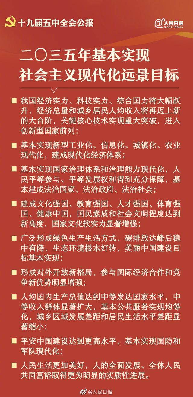 10月29日,中國共產(chǎn)黨第十九屆中央委員會第五次全體會議公報發(fā)布。全會高度評價決勝全面建成小康社會取得的決定性成就,提出了到二〇三五年基本實現(xiàn)社會主義現(xiàn)代化遠景目標(biāo)以及“十四五”時期經(jīng)濟社會發(fā)展主要目標(biāo)。中國將如何實現(xiàn)這一宏偉藍圖,14個關(guān)鍵詞速讀五中全會公報。