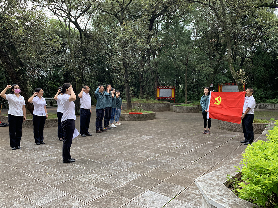 根據(jù)活動議程安排,全體人員首先來到華寧縣人民革命紀念碑前瞻仰革命烈士,緬懷先烈事跡?,F(xiàn)場氣氛莊嚴肅穆,全體人員整齊列隊,黨員同志胸前佩戴黨徽,全體人員面向革命烈士紀念碑默哀一分鐘,接著由華寧農(nóng)商行城關(guān)支行楊妮同志帶領(lǐng)大家面向烈士紀念碑和黨旗重溫入黨誓詞,并瞻仰烈士紀念碑和名錄墻,深切緬懷為解放新中國做出杰出貢獻的革命烈士。