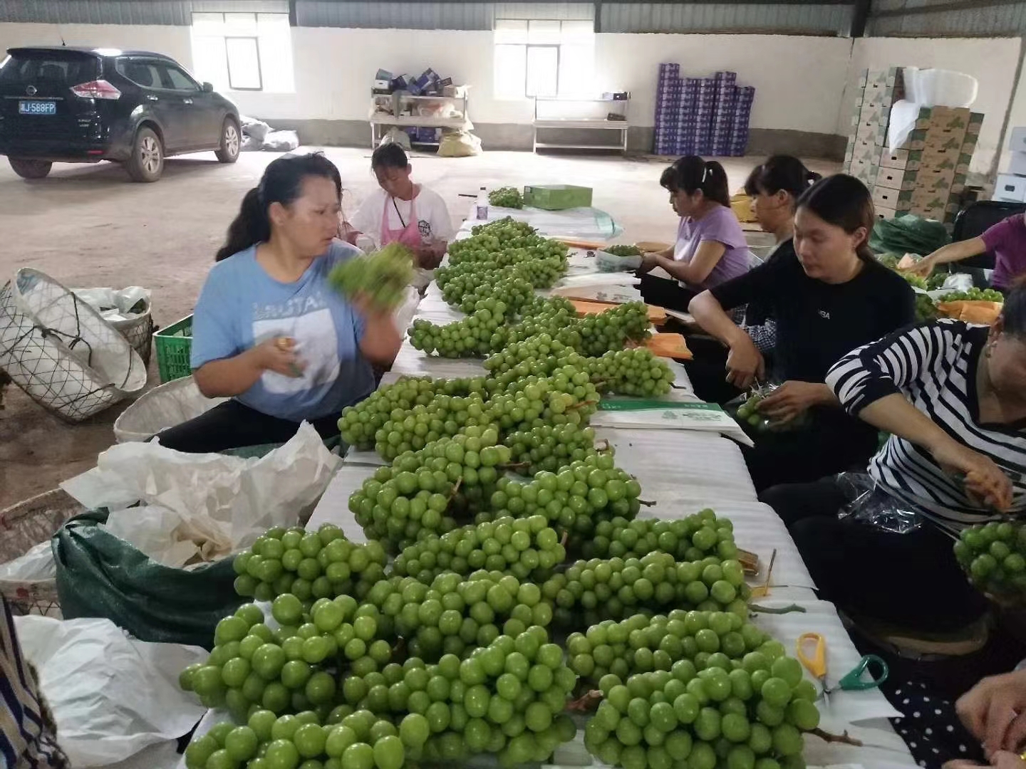 云南農擔公司在??蛻綦p柏縣三江葡萄莊園有限公司成立于2013年,注冊資本金100萬元,是一家專門從事葡萄種植銷售的企業(yè),現有技術人員2人,管理人員5人,一線種植固定工人40余人。在雙柏縣大麥地鎮(zhèn)很本楷建有葡萄基地50畝,用于試種陽光玫瑰,并取得一定經驗。在農擔公司支持和幫助下,2018年公司擴大種植規(guī)模至185畝并取得了一定的經濟效益。由于綠汁江畔獨特的氣候條件和精湛的技術,三江公司開創(chuàng)了雙季葡萄的先河,一年可采收葡萄2次,分別于4月初和9月底上市。以上圖片為盡調時拍攝的基地工人包裝陽光玫瑰的照片。