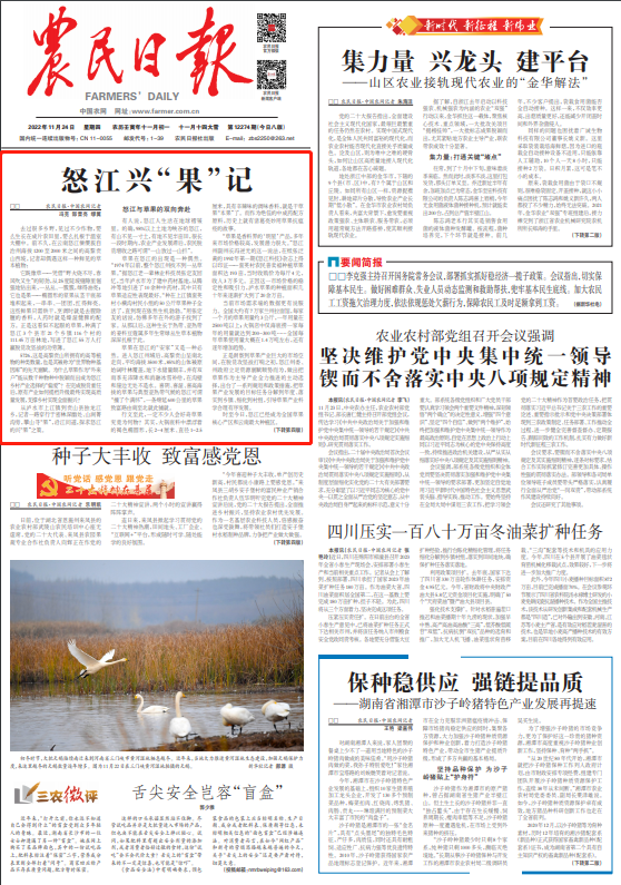 《農(nóng)民日報(bào)》頭版頭條刊文