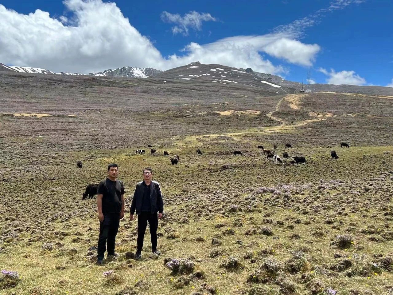 6月的迪慶州,在海拔4700米以上的白馬雪山還覆蓋著皚皚白雪。接到雪山上從事牦牛養(yǎng)殖客戶培布的擔(dān)保申請,我們立即沿著金沙江峽谷向目的地出發(fā),短短的13公里,海拔從2000余米迅速攀升至4700米,雖然提前準(zhǔn)備了氧氣瓶,但將近2700米的垂直落差,也讓從未到過那么高海拔的小伙伴們,內(nèi)心多了一些忐忑。經(jīng)過近五個小時的路程,我們終于抵達(dá)牦牛養(yǎng)殖基地,聽著客戶用略帶藏語腔調(diào)的普通話介紹著養(yǎng)殖情況,大家所有不適早已拋至九霄云外,迅速進(jìn)入了工作狀態(tài)。調(diào)查完成后,我們第一時間聯(lián)系合作銀行,進(jìn)行業(yè)務(wù)對接,讓培布在最短的時間內(nèi)獲得了擴(kuò)大養(yǎng)殖規(guī)模所需要的資金。