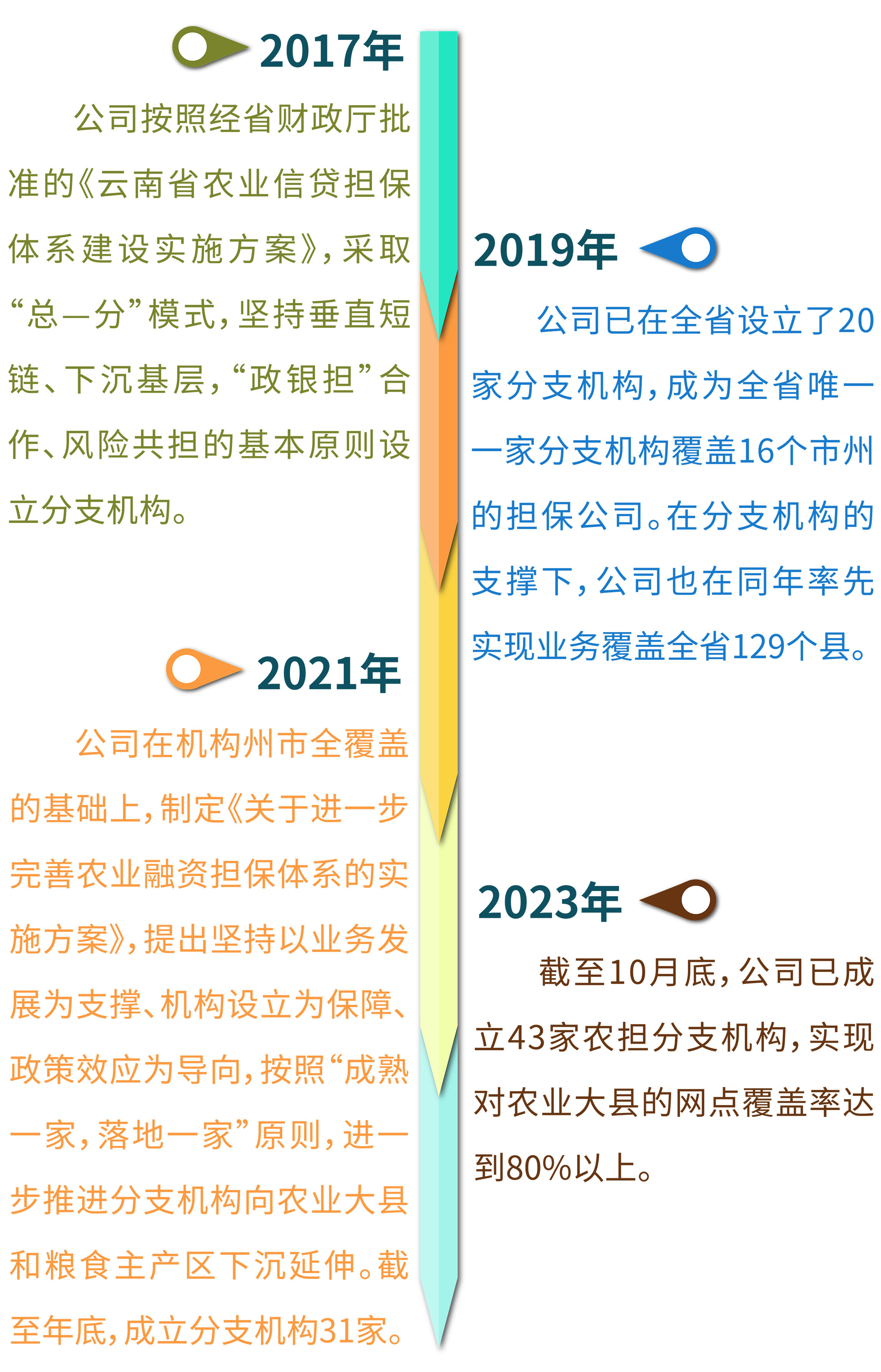 近日,隨著公司彝良辦事處、云縣辦事處先后掛牌,全省共計43家農(nóng)擔分支機構(gòu)投入運營,我省農(nóng)業(yè)信貸擔保體系建設(shè)規(guī)劃全面完成,農(nóng)業(yè)信貸擔?;A(chǔ)進一步夯實,支農(nóng)助農(nóng)手段顯著增強。