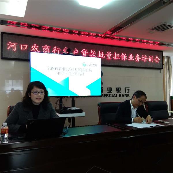 1月16日下午,紅河辦事處工作人員受邀參加云南河口農(nóng)村商業(yè)銀行股份有限公司擔(dān)保業(yè)務(wù)培訓(xùn)會。
