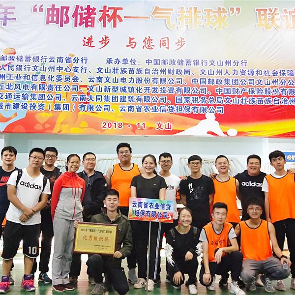 文山州“郵儲(chǔ)杯-氣排球”聯(lián)誼賽圓滿結(jié)束,農(nóng)擔(dān)公司光榮獲得優(yōu)秀獎(jiǎng)。