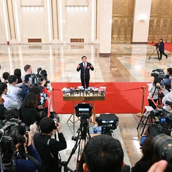 農(nóng)業(yè)農(nóng)村部部長(zhǎng)韓俊在“部長(zhǎng)通道”上回答了記者提問(wèn)。