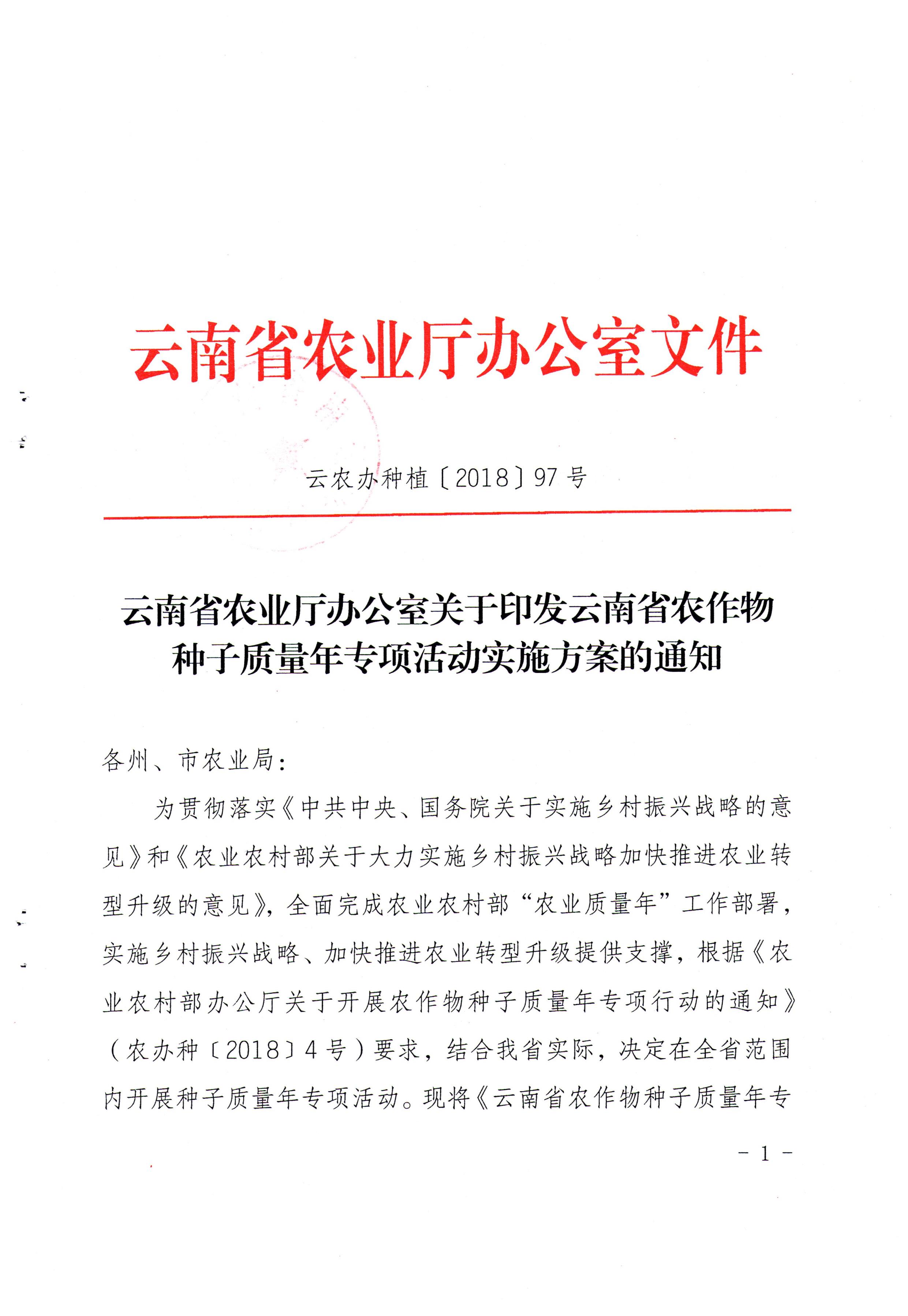 云南省農(nóng)業(yè)廳辦公室關(guān)于印發(fā)云南省農(nóng)作物種子質(zhì)量年專(zhuān)項(xiàng)活動(dòng)實(shí)施方案的通知