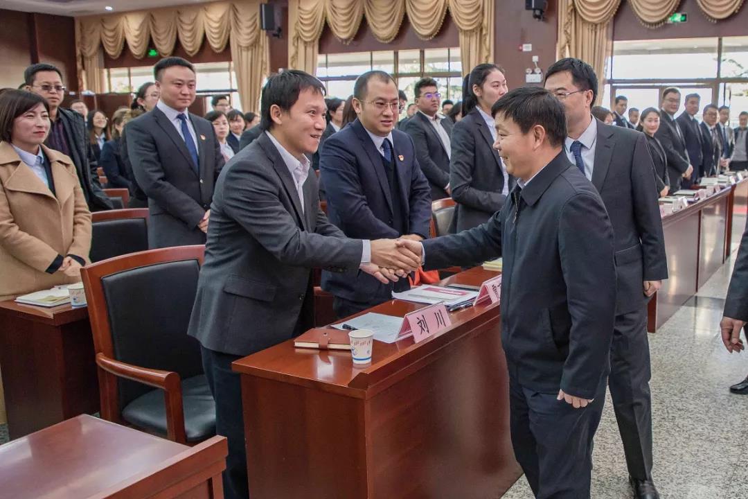 在總結(jié)會會場,張巖松廳長與省農(nóng)擔(dān)公司優(yōu)秀員工親切握手,一一詢問大家的工作情況。張巖松廳長對2018年省農(nóng)擔(dān)公司取得的不俗成績給予了充分肯定。他表示,全體農(nóng)擔(dān)員工按照省委、省政府的安排部署,開拓創(chuàng)新、銳意進取,機構(gòu)覆蓋全省16個州市,業(yè)務(wù)覆蓋118個縣,圓滿完成新增涉農(nóng)貸款擔(dān)保50億的任務(wù),是大家共同努力、辛勤工作的成果,值得鼓勵和祝賀。