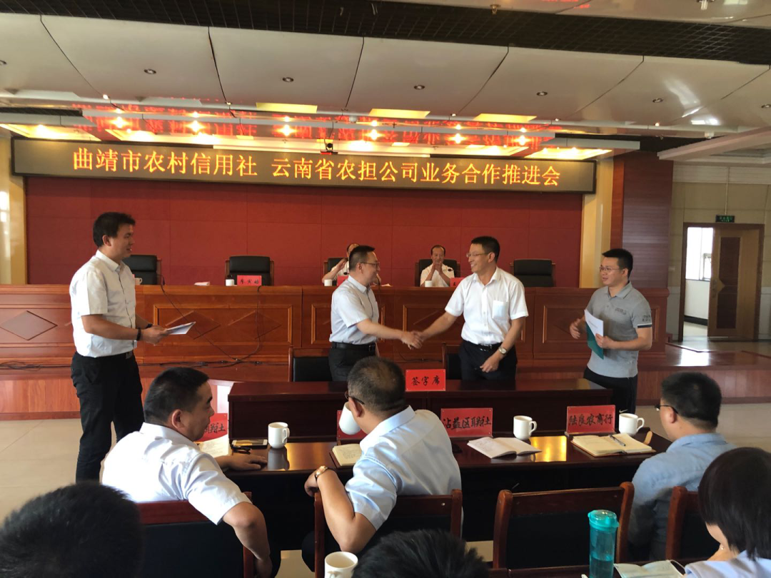 5月13日,公司廖寅皓副總經(jīng)理帶隊(duì)赴曲靖與曲靖農(nóng)商行進(jìn)行座談。雙方就曲靖地區(qū)銀擔(dān)合作及業(yè)務(wù)發(fā)展取得的成績、存在的不足、下步的工作計(jì)劃、改進(jìn)措施等具體事項(xiàng)進(jìn)行了探討和磋商,交換了意見,并共同簽署了業(yè)務(wù)合作協(xié)議。這標(biāo)志著農(nóng)擔(dān)與農(nóng)信將繼續(xù)深化合作,同心、同行、同步推進(jìn)業(yè)務(wù)發(fā)展,為曲靖9縣(市、區(qū))農(nóng)業(yè)發(fā)展提供金融支持。