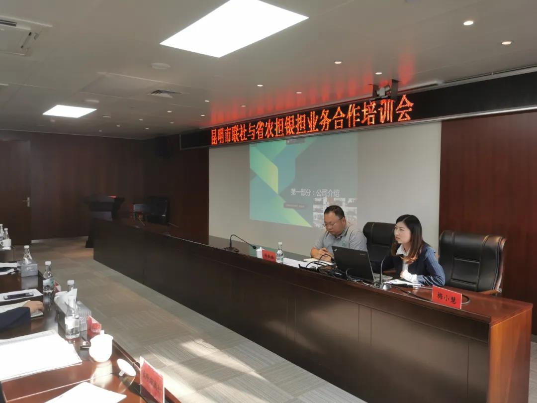 為進一步加深與昆明地區(qū)15家信用社/農(nóng)商行合作,2020年11月18日農(nóng)擔(dān)二部負(fù)責(zé)人張長浩攜昆明業(yè)務(wù)團隊到昆明市農(nóng)村信用合作聯(lián)社參加“昆明市聯(lián)社與省農(nóng)擔(dān)銀擔(dān)業(yè)務(wù)合作培訓(xùn)會”,會議通過主分會場形式同時進行,主會場由昆明市聯(lián)社個金部全員、信貸管理部全員、宜良信用社、尋甸農(nóng)商行、嵩明農(nóng)商行相關(guān)領(lǐng)導(dǎo)及我公司人員參會,分會場由昆明市15家縣級聯(lián)社領(lǐng)導(dǎo)、信貸部全員、個金部全員以及各支行業(yè)務(wù)骨干通過視頻連線的方式參會。會議由市聯(lián)社個金部負(fù)責(zé)人尹夔主持。
