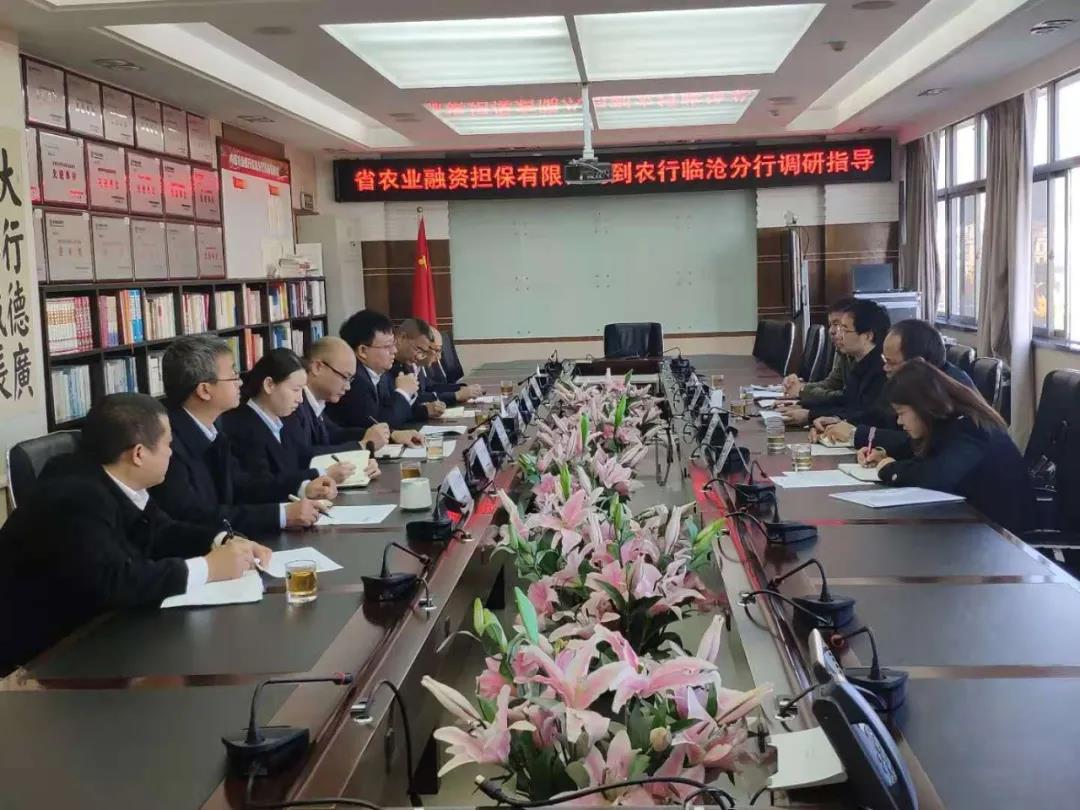 為進一步增強政銀擔(dān)合作關(guān)系,2020年12月15日,董事長郭影、農(nóng)擔(dān)一部負(fù)責(zé)人寸明杰及臨滄辦事處聯(lián)合臨滄市金融辦主任羅廷榮,前往農(nóng)業(yè)銀行開展政銀擔(dān)業(yè)務(wù)座談。