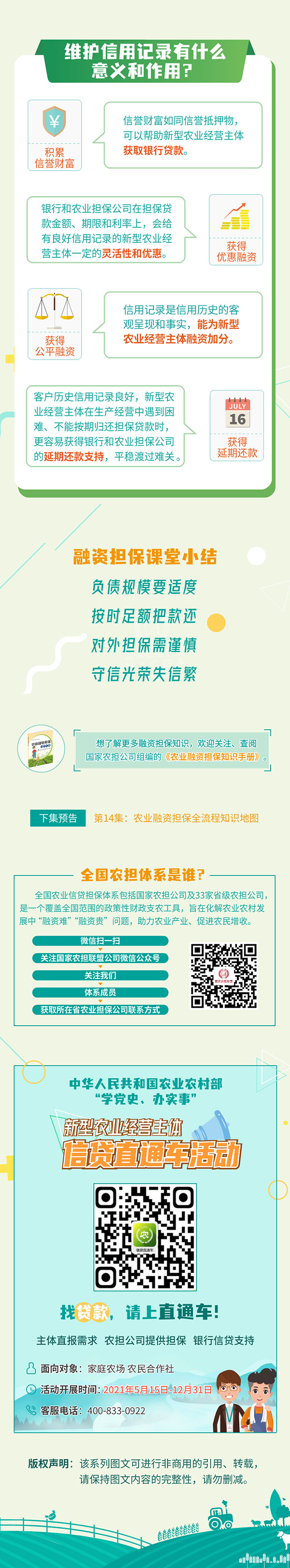 【農(nóng)業(yè)融資擔(dān)保知識(shí)普及專欄】第13集 維護(hù)好信用記錄 擔(dān)保貸款再借不難