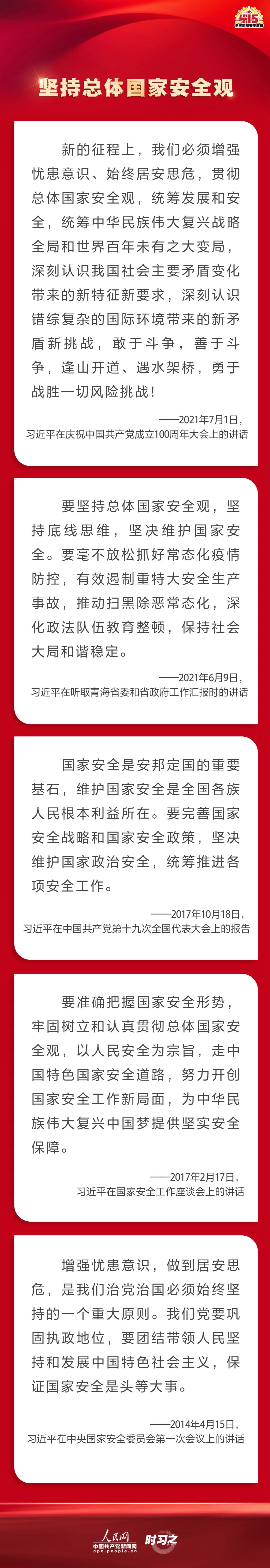 備豫不虞,為國常道。實現(xiàn)中華民族偉大復興的中國夢,保證人民安居樂業(yè),國家安全是頭等大事。在第七個全民國家安全教育日到來之際,一起回顧習近平總書記在不同場合就維護、筑牢國家安全觀發(fā)表的一系列重要論述,增強維護國家安全的責任感、使命感、緊迫感。