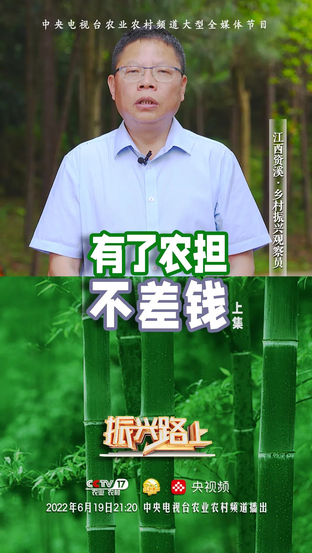 上集節(jié)目以浙江、安徽、江蘇、黑龍江、四川五家省級(jí)農(nóng)擔(dān)公司為例,為您詳細(xì)講述《有農(nóng)擔(dān)不差錢》的農(nóng)擔(dān)故事。鄉(xiāng)村振興,有我農(nóng)擔(dān)!6月19日(周日)晚9點(diǎn)20分于CCTV-17頻道,敬請(qǐng)收看。