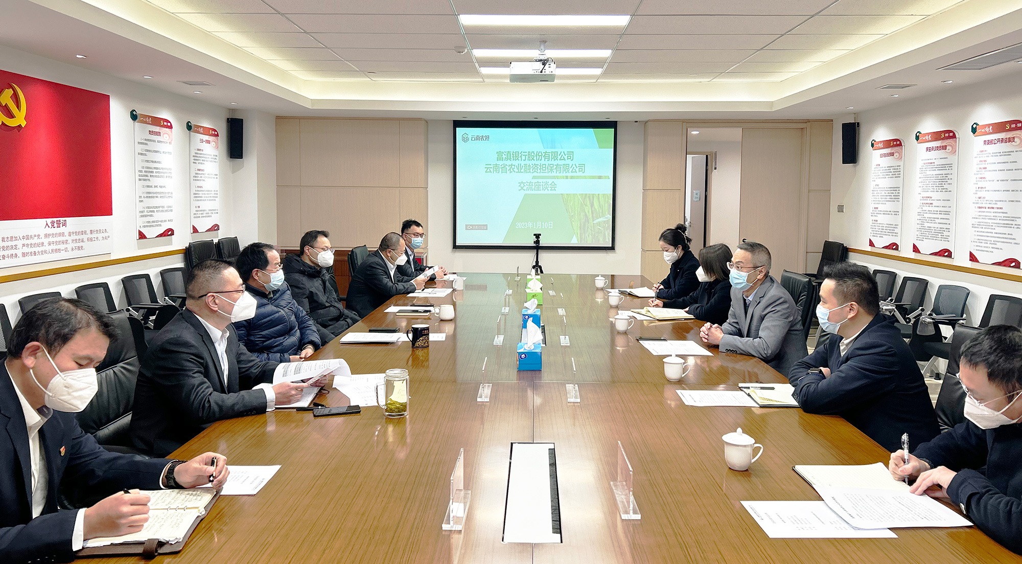 2023年1月10日,云南省農(nóng)業(yè)融資擔(dān)保有限公司與富滇銀行股份有限公司召開銀擔(dān)合作座談會(huì)。富滇銀行黨委委員、副行長(zhǎng)納然,公司董事長(zhǎng)杜開波、總經(jīng)理李世偉、副總經(jīng)理廖寅皓出席會(huì)議。會(huì)議圍繞2023年雙方合作目標(biāo)展開討論,并就推進(jìn)下一步戰(zhàn)略合作達(dá)成共識(shí)。